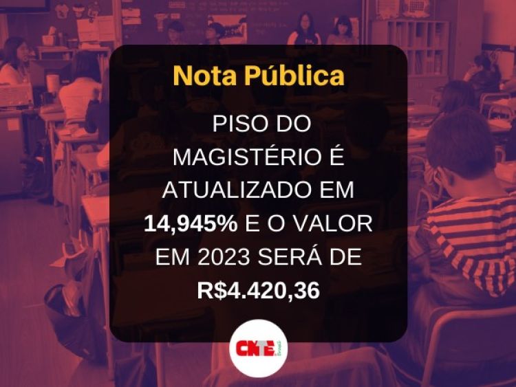 A CNTE orienta seus sindicatos filiados e todas as entidades representativas dos profissionais do magistério no país a lutarem pela implementação do piso nacional estabelecido para 2023, bem como sua vinculação nos planos de carreira.