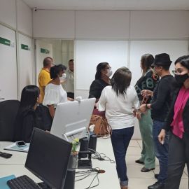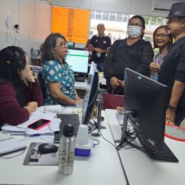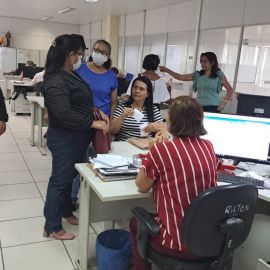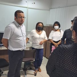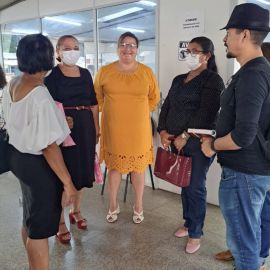 A presidente do Sinte-PI, professora Paulina Almeida, Filomena Cristina (secretaria geral), Edimar Nascimento (secretária de comunicação) e Fábio Matos (secretário de assuntos municipais), passaram por vários setores da Seduc dando boas vindas aos novos servidores e buscando informações sobre as pautas dos trabalhadores em educação, como por exemplo o início do período letivo.