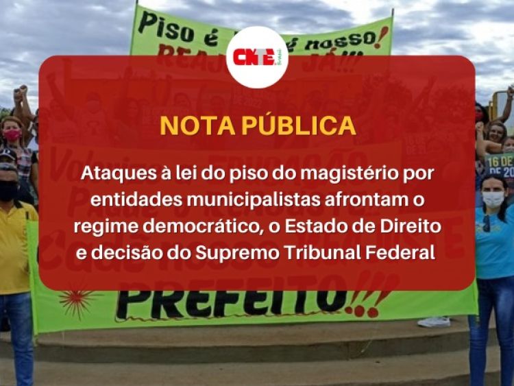 Diante do exposto, a CNTE reitera sua orientação aos sindicatos filiados e às demais entidades que representam os servidores do magistério público da educação básica no país para que exijam o efetivo cumprimento do piso salarial nacional do magistério, no valor de R$ 4.420,55, em 2023. Também requer ao Ministério da Educação (diferente do que ocorreu na gestão anterior) uma resposta imediata aos ataques descabidos e sem base legal das entidades municipalistas que anunciam BOICOTE à aplicação do piso do magistério. O MEC e a Advocacia Geral da União devem tomar todas as providências cabíveis para garantir o cumprimento da legislação federal e, consequentemente, o respeito ao Estado Democrático de Direito.