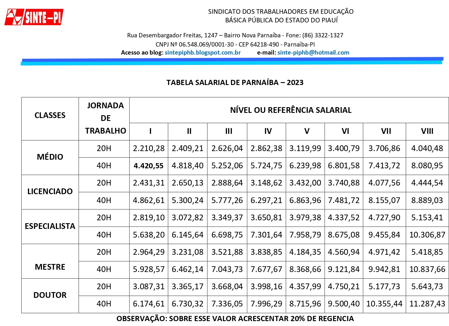 Fig.1: Tabela Salarial de Parnaíba 2023