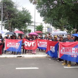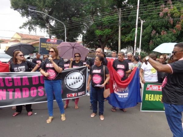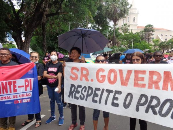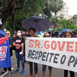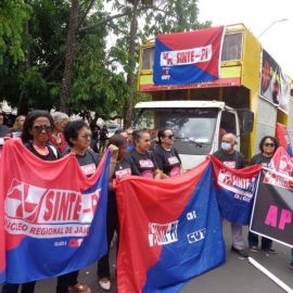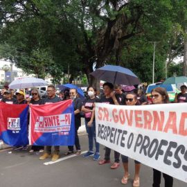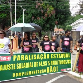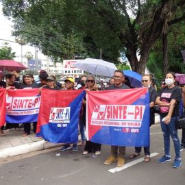 Paulina Almeida, presidente do SINTE PI, acentuou que “a categoria está fazendo esta manifestação, com paralisação em todo o estado, pelo Piso Salarial e pela carreira. Hoje reafirmamos o nosso repúdio ao Projeto de Lei 13, aprovado nesta semana pelo governo Rafael Fonteles, que desvaloriza a categoria, e lutamos pela revisão da reforma da Previdência estadual que penalizou o segmento de servidores aposentados.”