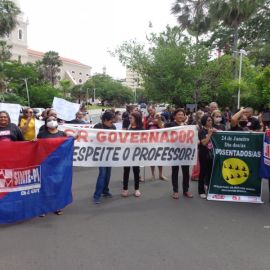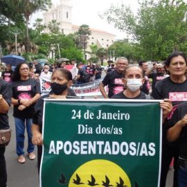 A II Marcha dos Aposentados da Educação” começou com a concentração dos trabalhadores/as da rede estadual de educação ao lado do Palácio de Karnak. A presença dos servidores/as ativos/as fortaleceu a manifestação do segmento dos aposentados e aposentadas da educação no que diz respeito a luta pela revisão da Reforma da Previdência estadual, além de unificar ainda mais a Campanha Salarial na defesa do reajuste salarial de forma linear e na carreira.