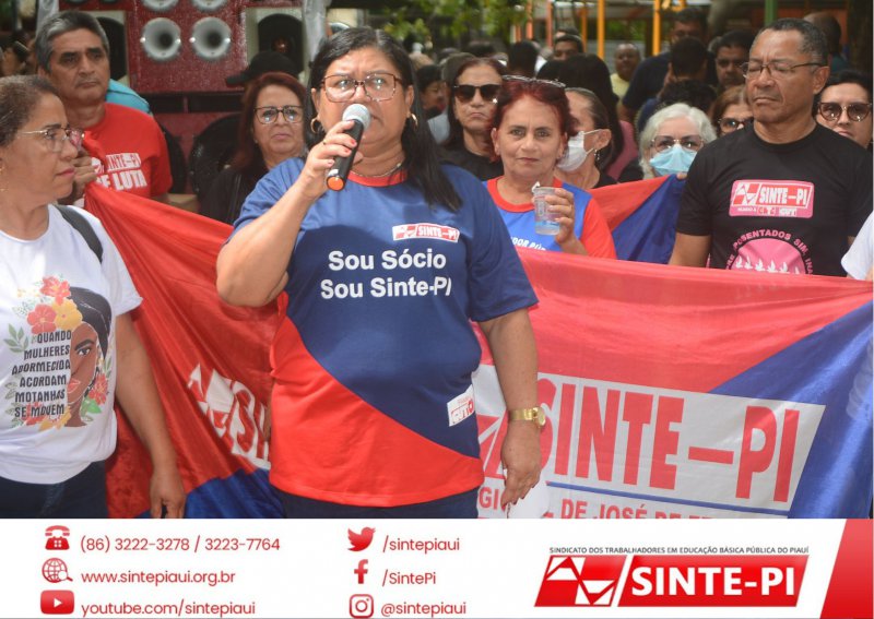 A presidente do SINTE-PI, Paulina Almeida, deixou manifesto que " estamos hoje aqui fortalecendo o "Dia Nacional em Defesa da Aplicação do Piso" em sintonia com a nossa Confederação, a CNTE, sublinhando que no nosso estado tivemos apenas uma complementação salarial para os que recebiam abaixo do piso e não um reajuste de fato, linear e na carreira. Continuamos firmes na luta pela valorização profissional da nossa categoria."