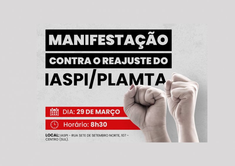E para dizer que não concordamos com essa proposta de reajuste, o SINTE-PI convoca todos os servidores públicos da educação e de todas as categorias para uma manifestação dia 29 de março, em frente ao prédio do IASPI, centro de Teresina, a partir das 8h30.