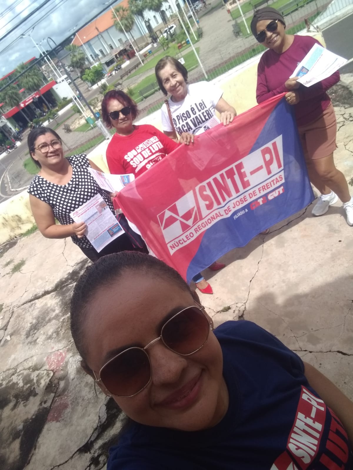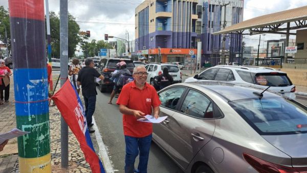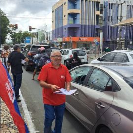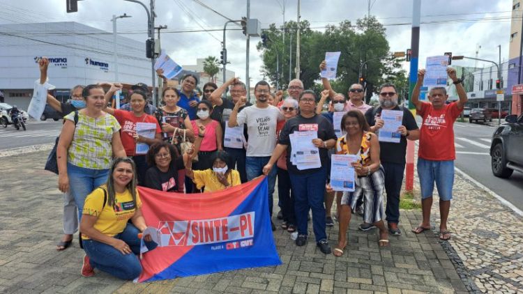O panfletaço do SINTE-PI e seus Núcleos Regionais ocorrido na manhã desta quarta-feira (19/04) unificou estudantes e profissionais da educação no cruzamento da Av. Frei Serafim com rua Coelho de Resende, uma das principais vias da capital. Que contou também com a apoio do Sindicato dos Rodoviários (SINTETRO-PI), que mobilizou alertando a população sobre as precárias condições da escola pública.