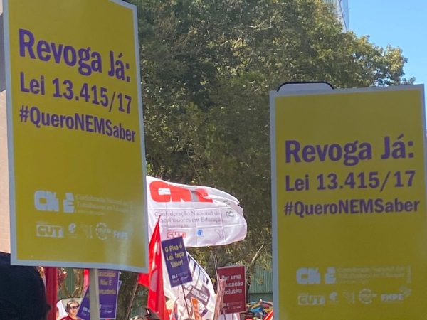 Por fim, a CNTE requer do MEC e de todos que participaram da Consulta Pública respeito aos resultados apontados pela sociedade e a comunidade escolar, a fim de que o projeto de lei para alterar e revogar a reforma do ensino médio seja elaborado e enviado ao Congresso Nacional, o quanto antes. A entidade também se manterá empenhada na construção do próximo plano decenal de educação e na aprovação imediata do Sistema Nacional de Educação e do Custo Aluno Qualidade, entendendo que essas políticas são essenciais para aprimorar a cooperação federativa e para potencializar o financiamento da educação pública, não apenas na etapa do ensino médio mas em todos os níveis, etapas e modalidades da educação brasileira.
