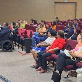 A primeira roda de conversa, abordou com muita profundidade os Direitos dos trabalhadores da educação com deficiência e a questão relativa ao capacitismo e os desafios para qualificação continuada dos trabalhadores da educação básica com deficiência.