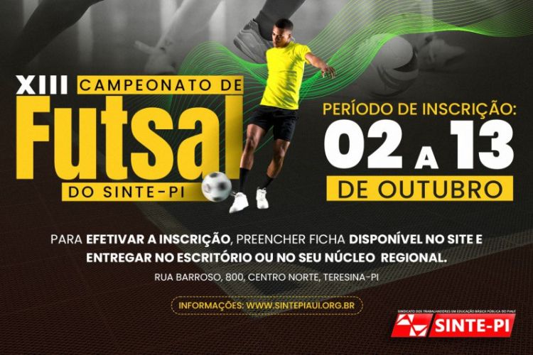 Assim como acontece todos os anos, a secretaria de esportes do Sinte-PI está preparando a décima terceira edição do Campeonato de Futsal Masculino do Sinte-PI.