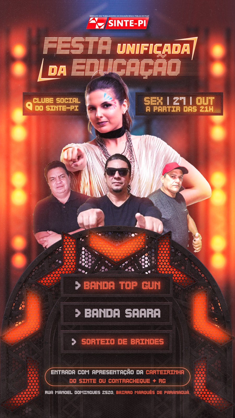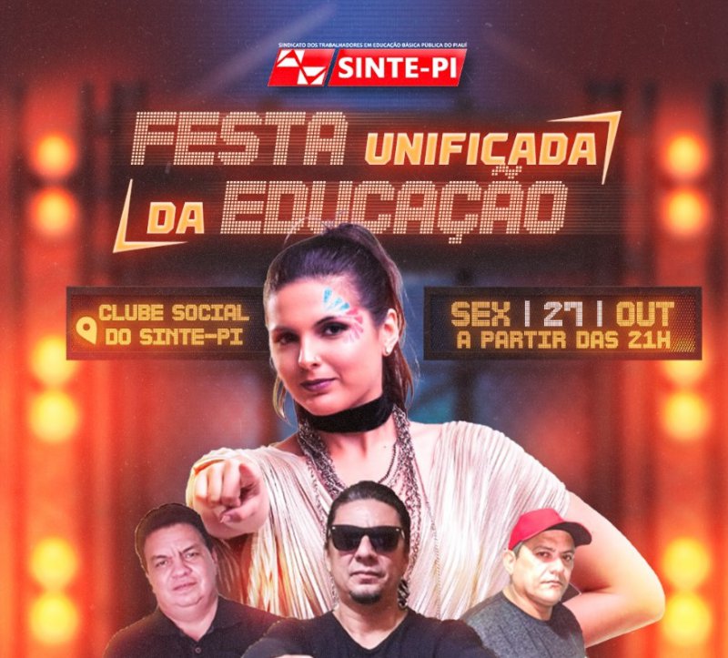 Festa em Comemoração pelo Dia do Professor e dia do Servidor Público será realizada dia 27 de outubro, a partir das 21h no Clube do Sinte.