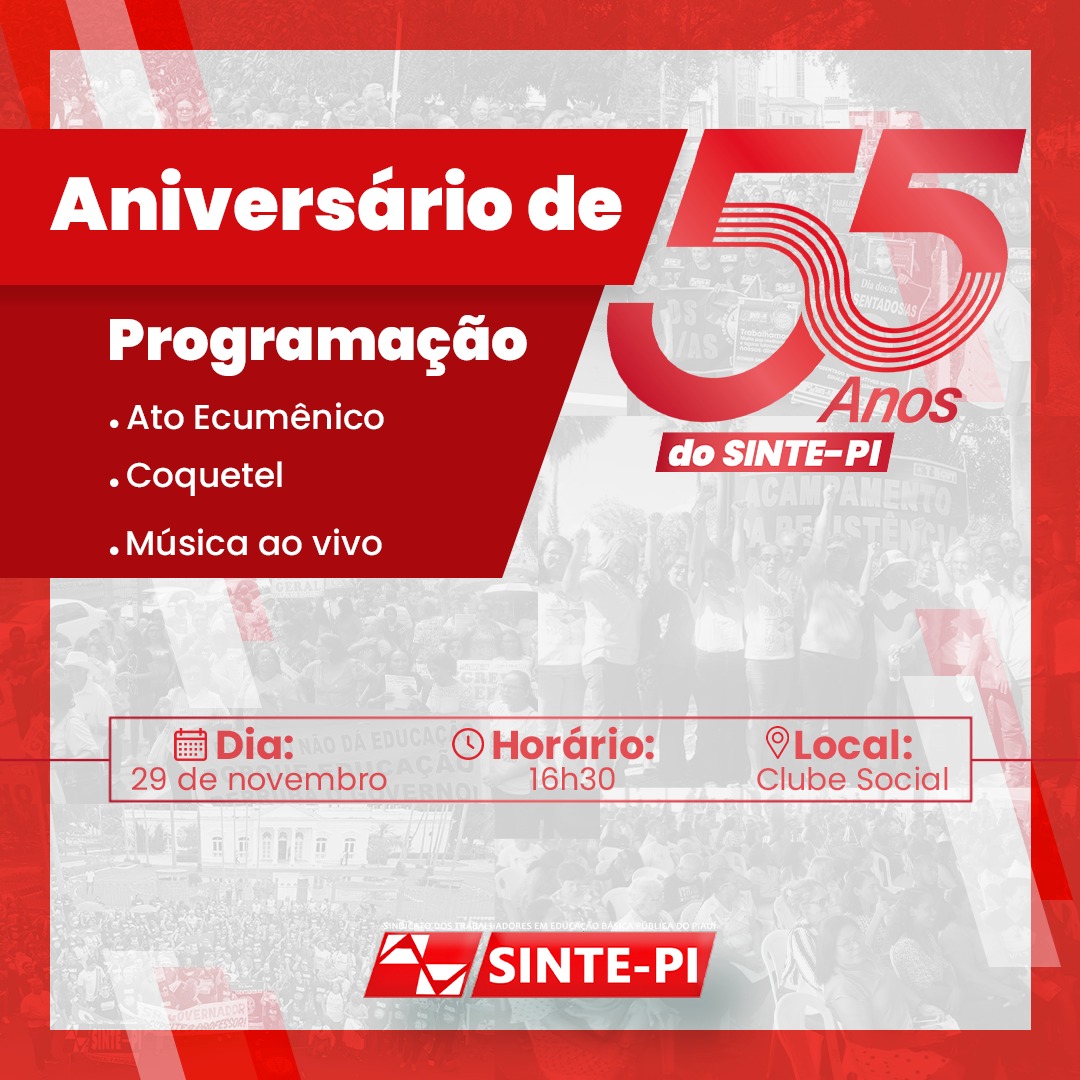 Nos 55 anos do Sinte-PI, os trabalhadores em educação celebram com Resistência e manifestação.