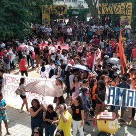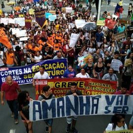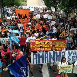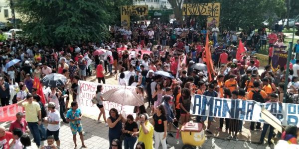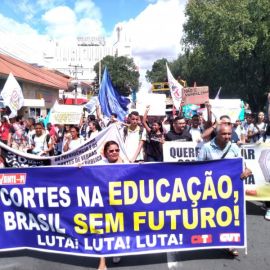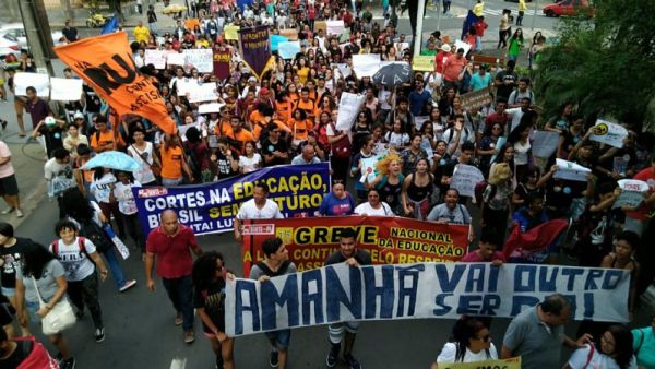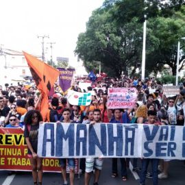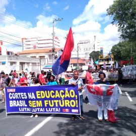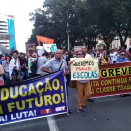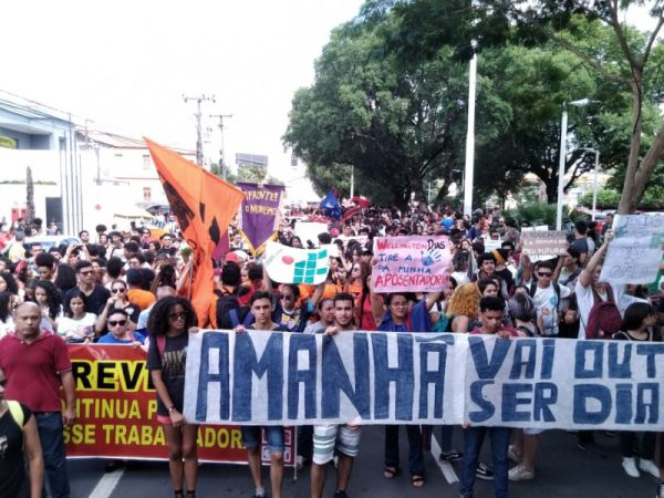 Esquentando para a greve geral no dia 14 de junho, bradaram a pulmões plenos contra os cortes na Educação e em relação ao fim da aposentadoria púbica. Após a exposição das lideranças estudantis e sindicais, o movimento seguiu pelas ruas do Centro, realizando paradas estratégicas como, por exemplo, em frente ao Ministério do Trabalho, marcando o repúdio pela perda dos direitos trabalhistas e pela tentativa de massacrar os trabalhadores e suas entidades.