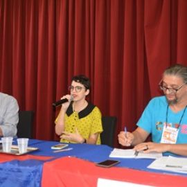 A seguir, o Secretário de Comunicação do Sinte-PI, João Correia destacou a importância dos movimentos sociais contrapor a informação diariamente jogada sobre a classe trabalhadora pela mídia corporativa. A vice-presidente da CUT-PI, Odeni de Jesus, defendeu a necessidade de um maior conhecimento para melhorar a comunicação entre os movimentos sociais e o público no enfrentamento a atual conjuntura.
