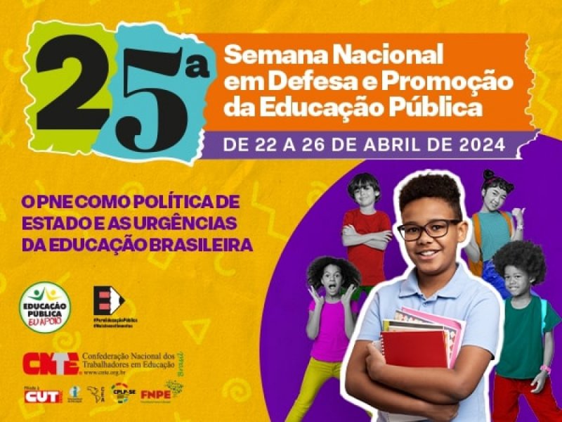 CLIQUE AQUI para acessar o livreto com a programação completa e guia de atividades da 25ª Semana Nacional em Defesa e Promoção da Educação Pública, que acontece de 22 a 26 de abril de 2024. Este ano, o tema do evento é: “O PNE como Política de Estado e as Urgências da Educação Brasileira”.