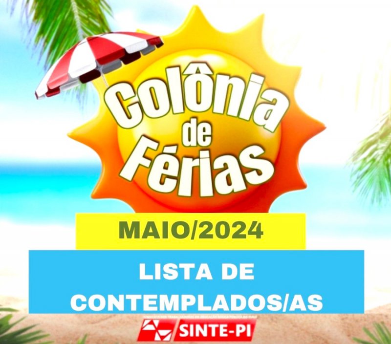 O resultado do sorteio dos/as contemplados/as para o mês de Maio/2024 na Colônia de férias do Sinte-PI está disponível (Veja relação abaixo). Os/as contemplados/as devem entrar em contato com a tesouraria do SINTE-PI para efetuar o pagamento conforme período pretendido. O não pagamento das reservas nas respectivas datas limite acarretará a substituição pelo/a suplente da lista de espera.