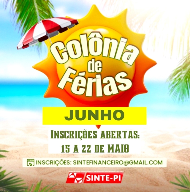 Estão abertas, do dia 15 a 22 de maio de 2024, as inscrições para associados do SINTE-PI que queiram fazer reserva para Colônia de Férias no sindicato. O resultado com o nome dos contemplados será divulgado no dia 27 de maio no site do SINTE-PI (www.sintepiaui.org.br) e nas redes sociais do sindicato.