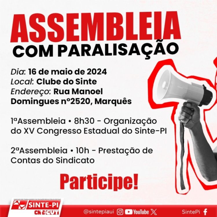 Assembleia geral nesta quinta-feira (16), às 8h30