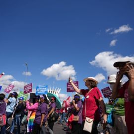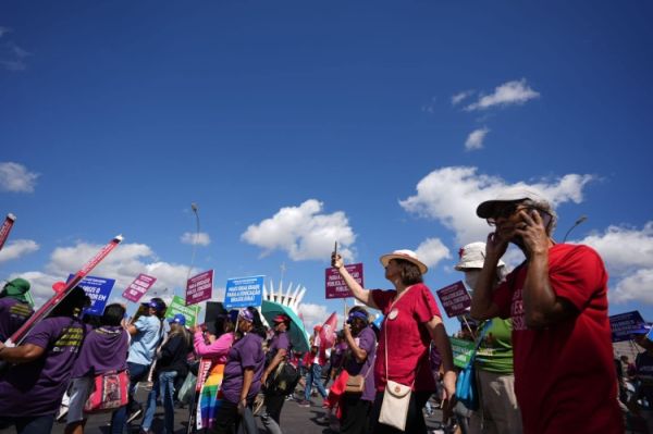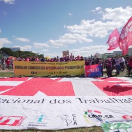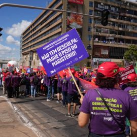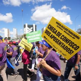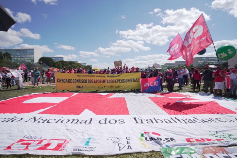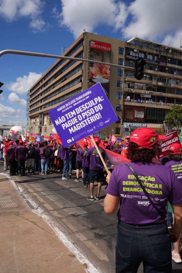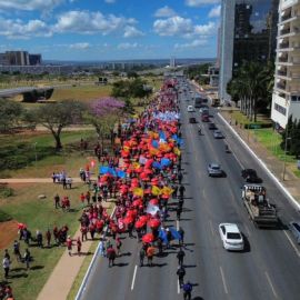 “Marchamos pelos direitos da classe trabalhadora, por emprego, renda e uma vida digna para todas as pessoas. Marchamos em defesa dos serviços públicos, pois todos possuem direito à educação, à saúde e à segurança, e é por isso que estamos lutando”, reforçou o presidente da Confederação Nacional dos Trabalhadores em Educação (CNTE), Heleno Araújo.
