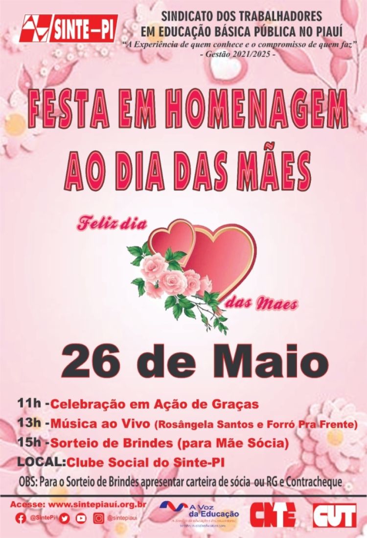 26 de maio, a partir das 11h, no Clube do Sinte-PI