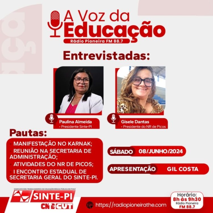 Acompanhe o programa 'A Voz da Educação', sintonizando na FM 88.7 - Rádio Pioneira, a partir das 8h.