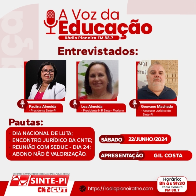 Nesse sábado (22/06), acompanhe o programa 'A Voz da Educação', que traz informações de grande importância para categoria!