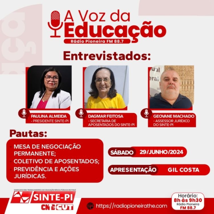 Nesse sábado (29/06), acompanhe o programa 'A Voz da Educação', que traz informações de grande importância para categoria!