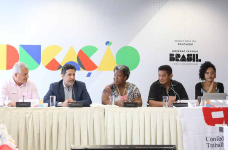 Na última sexta-feira (20), os integrantes do Coletivo Antirracismo da Confederação Nacional dos Trabalhadores em Educação (CNTE) participaram do primeiro encontro com entidades, organizações e redes de ensino para apresentar o balanço de 100 dias da Política Nacional de Equidade, Educação para as Relações Étnico-Raciais e Educação Escolar Quilombola (Pneerq), realizado pelo Ministério da Educação, em Brasília (DF).