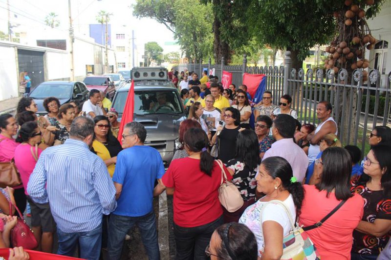 Na manhã desta segunda-feira (18) aconteceu a primeira manifestação dos trabalhadores em educação da rede estadual na luta pelo reajuste salarial de 4,17%. A mobilização ocorreu ao lado do Palácio de Karnak após Governo não efetuar o pagamento do reajuste do piso salarial dos trabalhadores em educação, que deveria efetuado no mês de janeiro, além de não atender as solicitações de audiências para tratar sobre o assunto com o sindicato. A categoria reivindica o reajuste de forma integral para docentes, funcionários de escola, ativos, aposentados e pensionistas, além do retroativo a janeiro.