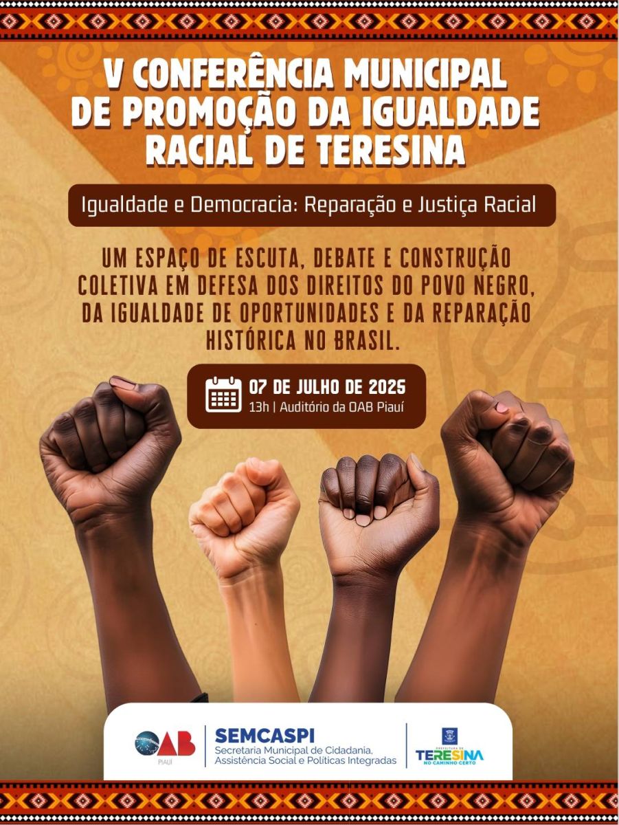A quinta conferência trouxe como tema: “Igualdade e Democracia: Reparação e Justiça Racial”. O objetivo é promover um espaço de escuta, debate e construção coletiva em defesa dos direitos do povo negro, da igualdade de oportunidades e da reparação histórica no Brasil.
