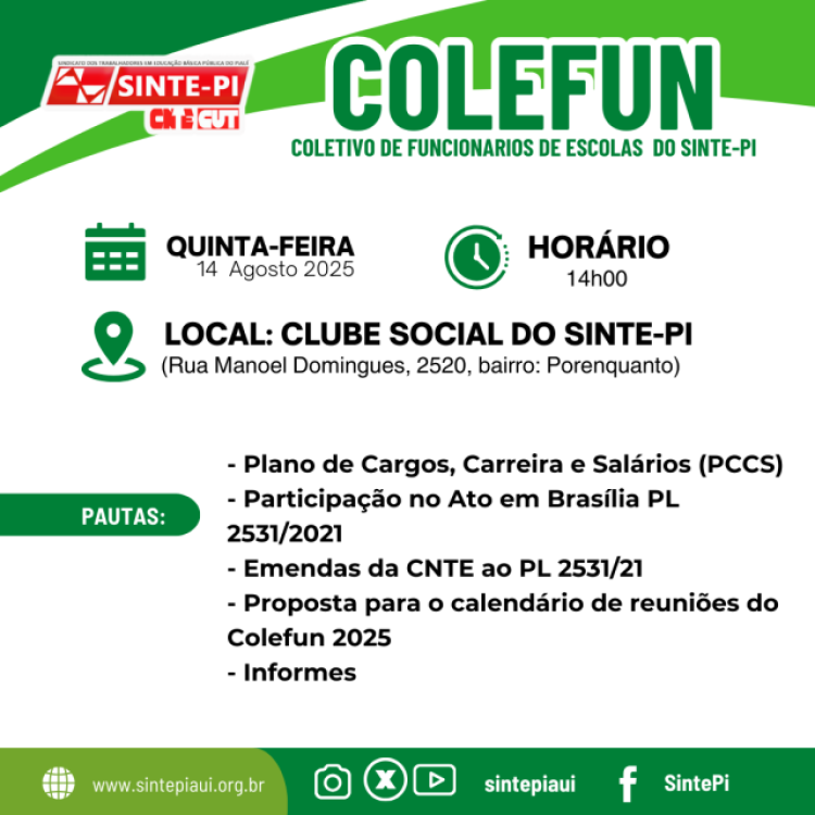 Reunião do COLEFUN – Coletivo de Funcionários de Escolas do SINTE-PI