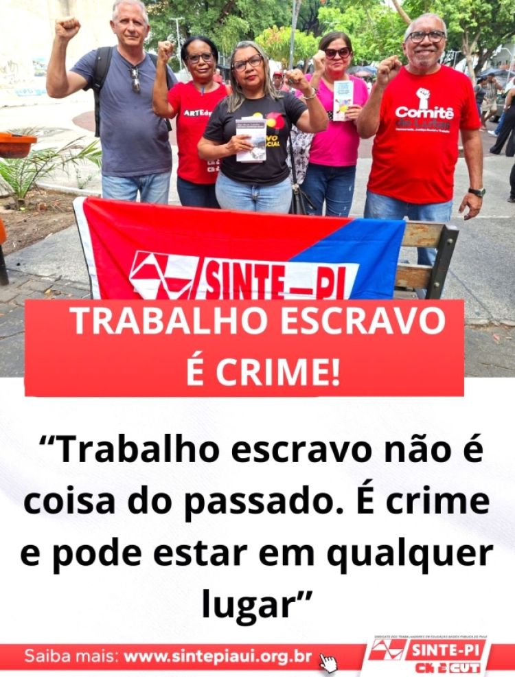 O SINTE-PI reafirma que combater o trabalho escravo é lutar por uma sociedade justa, democrática e igualitária. Não basta campanhas: é preciso políticas públicas efetivas, fiscalização rigorosa e punição exemplar para quem insiste em explorar trabalhadores e trabalhadoras.
