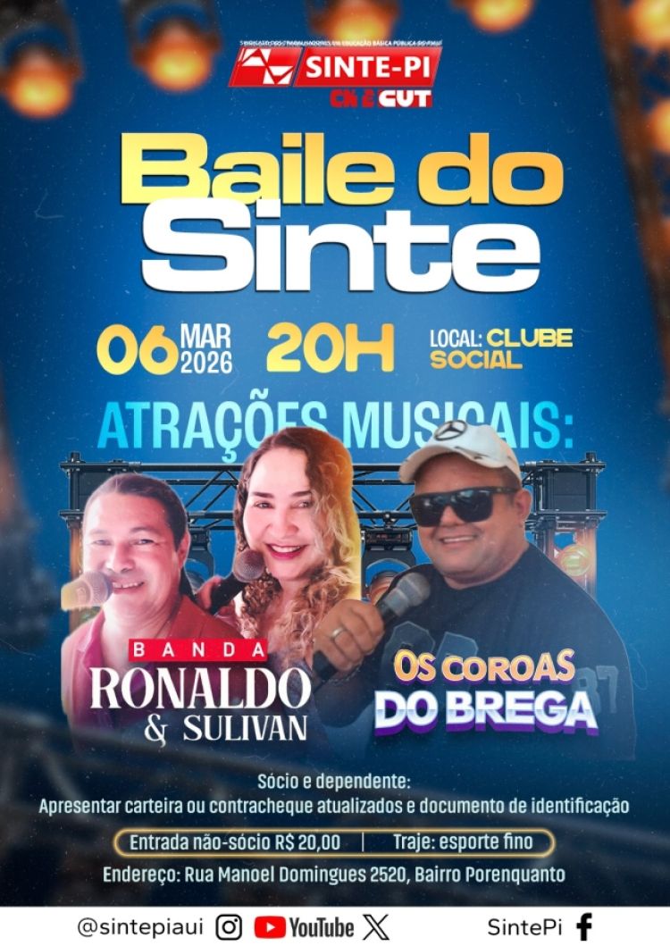 Nesta sexta-feira (06/03), a animação será por conta de 'Os Coroas do Brega' e Ronaldo e Siluvan', a partir das 20h, no Clube Social do Sinte-PI (Rua Manoel Domingues, 2520, Porenquanto)!