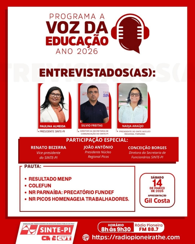 Nesse sábado (14/3) não perca o programa ‘A Voz da Educação’.