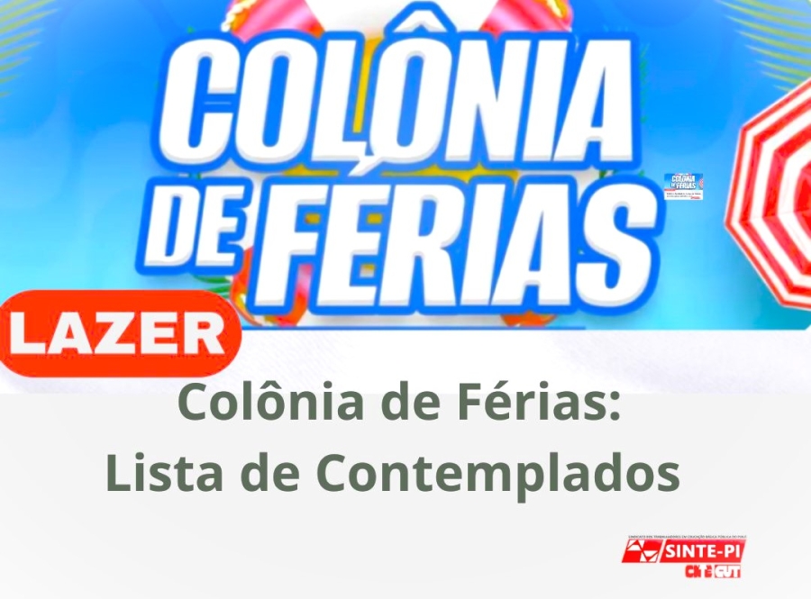 O SINTE-PI divulga nesta quarta-feira (25) a listta de filiadas e filiados contemplados com a hospedagem na Colônia de Férias do SINTE, em Luis Correia. Confira a relação abaixo.