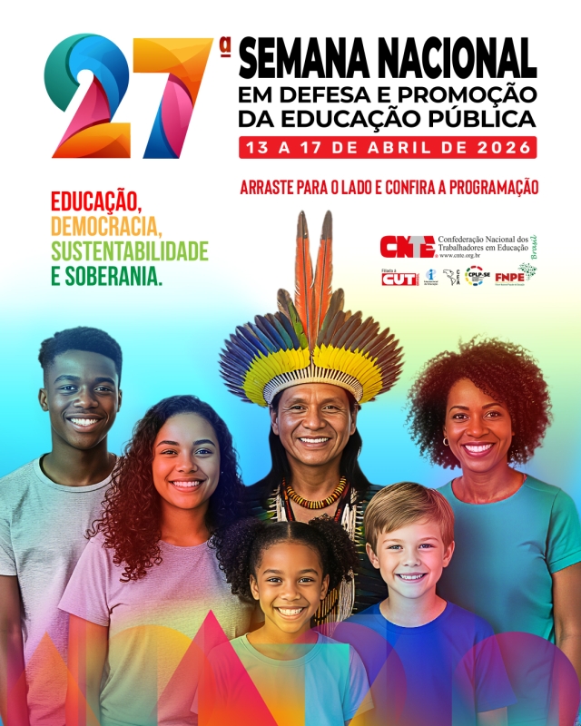 Entre os dias 13 e 17 de abril de 2026, a Confederação Nacional dos Trabalhadores em Educação (CNTE) e os sindicatos filiados a entidade, entre eles o SINTE-PI, promovem a 27ª Semana Nacional em Defesa e Promoção da Educação Pública. O evento reafirma o papel estratégico da escola pública na construção de uma sociedade democrática, soberana, igualitária e sustentável.