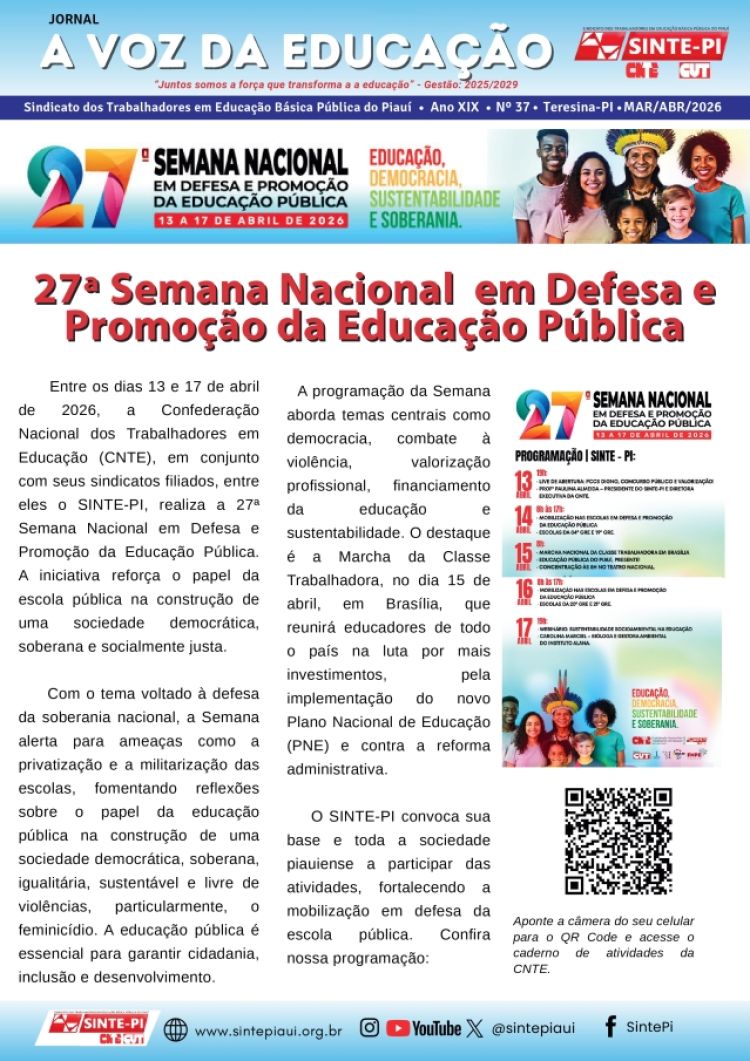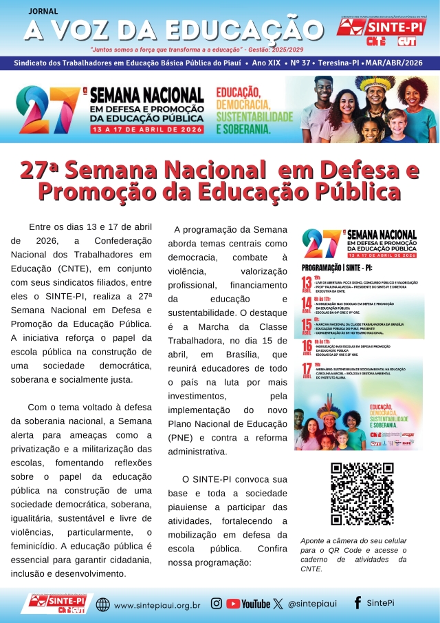 A edição nº 37 do jornal A Voz da Educação escancara o que está em jogo na luta dos trabalhadores da educação do Piauí e do Brasil: soberania, democracia e valorização profissional.