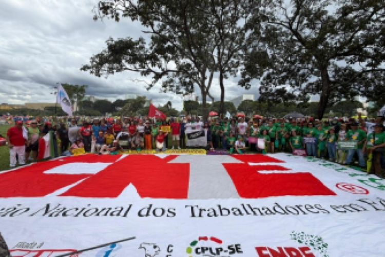 A Conferência Nacional da Classe Trabalhadora (Conclat) precedeu a Marcha, na manhã desta quarta-feira. Dirigentes das centrais sindicais e parlamentares participaram do encontro que aprovou a pauta da classe trabalhadora para 2026. O documento atualiza as pautas definidas em 2022 e serve como orientador para as eleições de 2026.