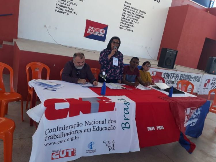 Em um primeiro momento, a presidente do Sinte-PI, Paulina Almeida fez uma profunda explanação sobre a conjuntura estadual, evidenciando as dificuldades que a categoria tem tido perante o governo Wellington Dias em relação a campanha salarial e a valorização dos trabalhadores em educação básica. Destacou a postura de luta que caracteriza a classe trabalhadora e mais especificamente os trabalhadores em educação básica pública do Piauí, como demonstrado em diversas ações e atividades em 2019, culminando com a greve e o atual estado de greve mantido pela categoria.