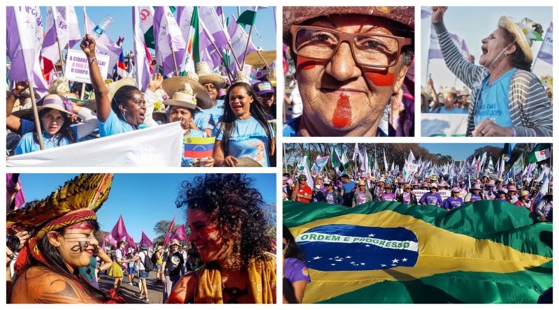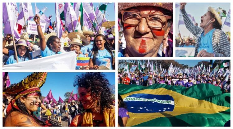 Cerca de 100 mil mulheres do campo, da floresta e das águas do Brasil e da América Latina, juntas em defesa de seus territórios, seus corpos e espíritos. Por um Brasil com Soberania Popular, Democracia, Justiça, Igualdade e Livre de Violência.