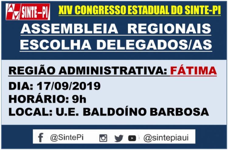 As reuniões para escolher os participantes do Congresso acontecerão por regiões administrativas, sendo a primeira a realizar sua assembleia a Região de Fátima, que atende 10 escolas da zona leste de Teresina, desde o Socopo até o Vale quem tem.