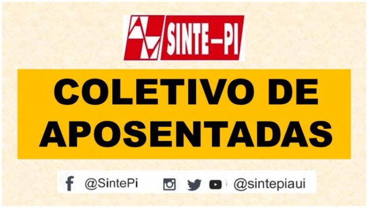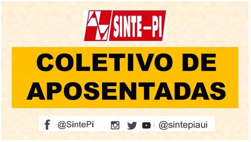 O Coletivo de Aposentadas da educação do Sinte-PI se reunirá na manhã desta quarta-feira (18/09) a partir das 8h30 no escritório do Sinte-PI (Rua Barroso, 800, centro Norte) para tratar mais uma reunião bimestral.