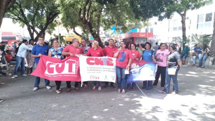 Os trabalhadores em educação básica que compõem a direção do Sinte-PI reaçizaram na manhã da última sexta-feira (20/09) um Ato Público e uma panfletagem na Praça Rio Branco contra a destruição do Brasil, defendendo o clima e em homenagem aos 98 anos do patronod a educação brasileira.