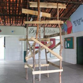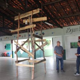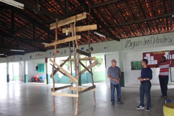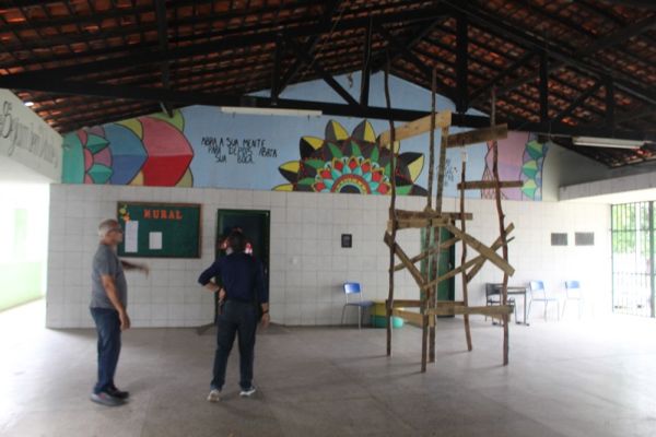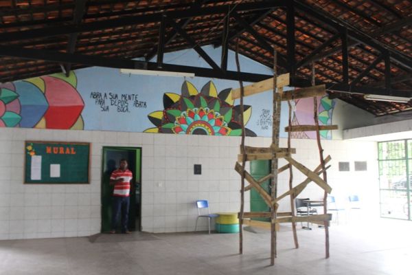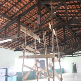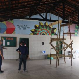 O teto do pátio da escola está sustentado por uma estrutura de madeira, o que não representa segurança nenhuma para a comunidade escolar. Professores, alunos e funcionários estão temendo acontecer algo de grave e até risco de morte. Pois a escola está em pleno funcionamento do ano letivo de 2019. A denúncia partiu dos próprios servidores durante a realização da semana pedagógica. Os servidores pedem ajuda e atenção da Seduc.
