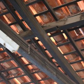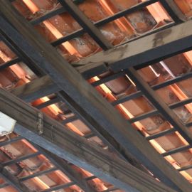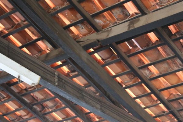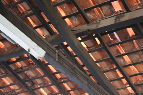 Escora de madeira sustenta o teto da escola há pelo menos duas semanas