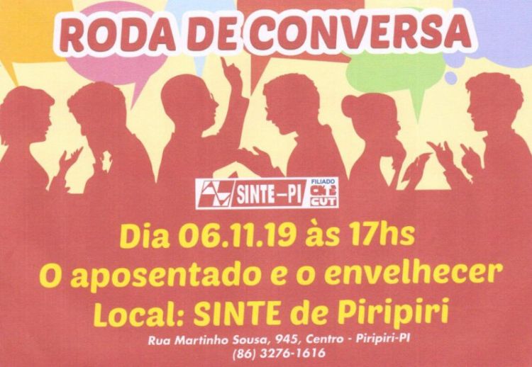 A atividade acontecerá hoje (06/11), a partir das 17h, no SINTE-PIRIPIRI (Rua Martinho Sousa, 945, Centro-Piripiri).