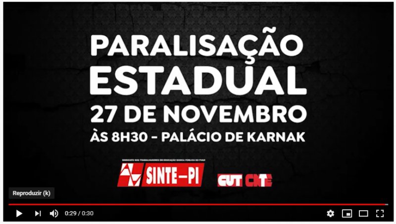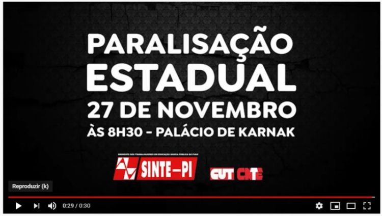 Sinte-PI convoca paralisação estadual dia 27/11/2019 às 8h30 em frente ao Palácio de Karnak.