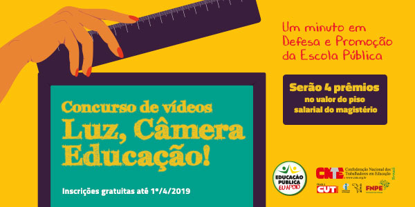 A Confederação Nacional dos Trabalhadores em Educação (CNTE) lança neste mês de março o concurso de vídeos de um minuto “Luz, Câmera, Educação!”. A participação é voltada para trabalhadores em educação de escola pública sindicalizados, estudantes de escolas públicas e seus pais ou responsáveis. A etapa de votação do Júri Popular será aberta para toda a sociedade.