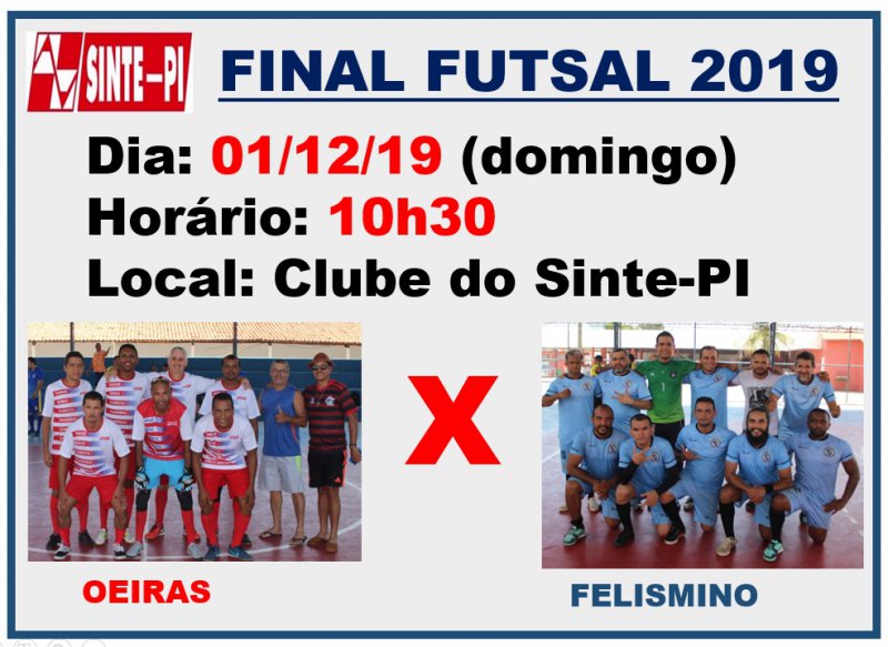 A grande final do XI Campeonato de Futsal do Sinte-PI acontecerá neste domingo, dia primeiro, com a disputa do título entre as equipes de Oeiras e Felismino Freitas (Teresina).