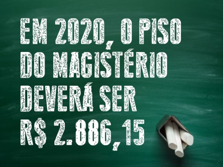 Piso Nacional dos trabalhadores em educação passa de R$ 2.557,74 (2019) para R$ 2.886,15 a partir de 1º de janeiro de 2020.