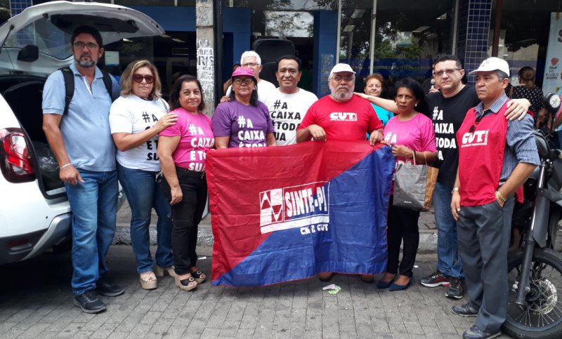 O SINTE-PI participou na manhã desta segunda-feira (13) do Dia Nacional de Luta em defesa da Caixa organizado pelo Sindicato dos Bancários do Piauí. O Ato que acontece hoje em todo o Brasil, aqui no Piauí aconteceu na Caixa Econômica agência Conselheiro Saraiva na Praça Rio Branco.