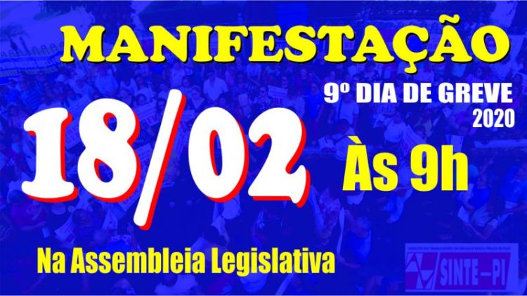 No nono dia de greve dos trabalhadores da rede estadual de educação, a categoria irá protestar em frente a Assembleia Legislativa (Alepi). A atividade acontecerá a partir das 9h, no pátio da Alepi.
